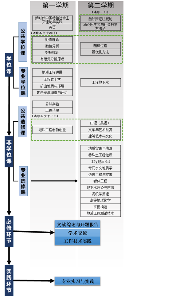 地质工程专业学位硕士研究生课程设置方案(工程专业学位总学分不少于32学分,其中学位课学分为16学分,课程学习不少于24学分;其他专业学位总学分需符合相关专业学位教学指导委员会相关要求)