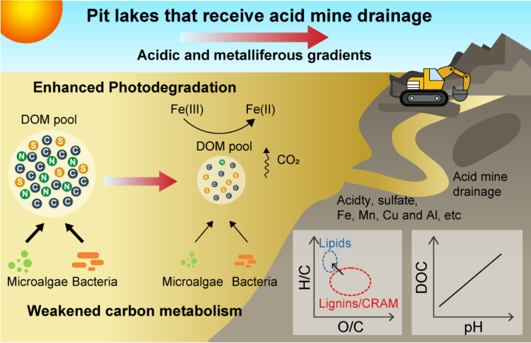 采矿坑湖是由采矿作业造成的特殊水体,通常受到酸性矿井排水(AMD)的影响,不仅危及水质,而且加剧了碳的损失。然而,AMD对坑湖坑湖中溶解有机质(DOM)的命运和作用的影响尚不清楚。统认识AMD中DOM的分布与多样性,是理解DOM在AMD污染控制和生态修复中作用的基础。