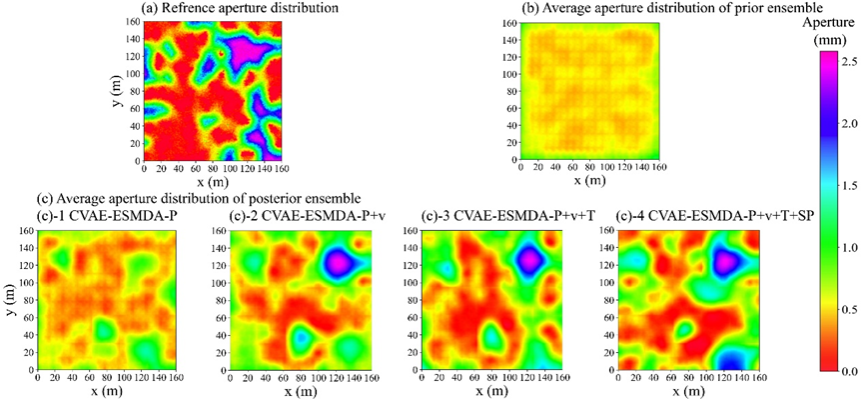 论文取得以下主要认识:(1)深度学习方法能够使用低维、高斯分布的潜变量来表征高维、非高斯分布的裂隙开度场,以满足反演算法只能对高斯参数场进行反演的前提;(2)随着多源数据的融合,反演精度和长期热预测的准确性都大体上得到了提升。同时,融合数据时需尽量使用变化幅度较大的数据。