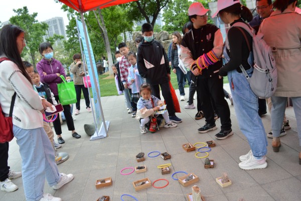 地学知识互动游戏区受到众多小朋友的关注和青睐。“识石套石”游戏中,小朋友在志愿者的引导下说出套中石头的名字就可以领取一份小纪念品或者地球科普读物,通过参与游戏感受到了地质岩石的丰富多彩与大自然的鬼斧神工。在“趣味投壶”中,小朋友们一次次努力尝试,在赢得游戏的同时,也体会到了中华文化的博大精深。互动过程中,家长朋友们一遍遍带领孩子们认识岩石、了解地球,现场互动频繁,气氛热烈。