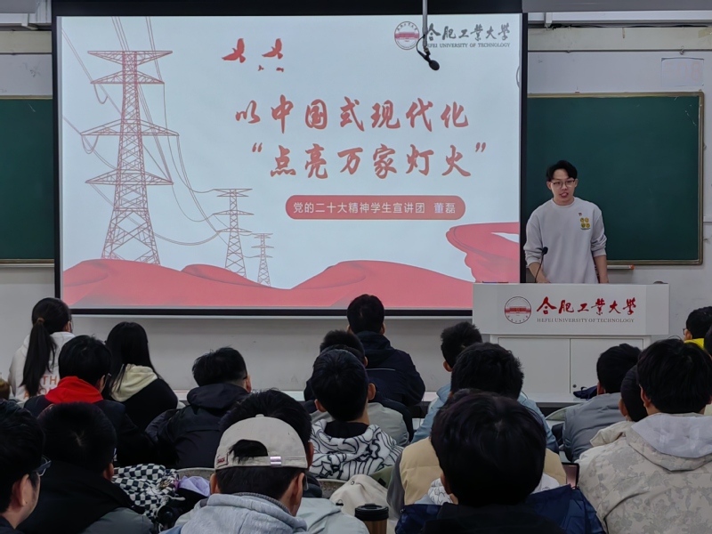 为深入学习宣传贯彻党的二十大精神,动员和激励全体学生自觉用党的二十大精神武装头脑、指导实践,踔厉奋发、勇毅前行,3月23日、3月30日,冰球突破豪华版官方网站分别于屯溪路校区西二502和西教301教室开展了“学习二十大永远跟党走奋进新征程”党的二十大精神主题宣讲会,党的二十大精神师生宣讲团成员、管理学院辅导员李星老师、校十佳自强励志大学生、电气与自动化工程学院本科生董磊应邀宣讲。冰球突破豪华版官方网站全体本科生参与了本次党的二十大精神宣讲活动。