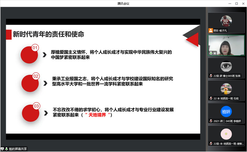 鲍丽娟以“新时代青年学生如何提升网络文明素养”为题,首先介绍了国际互联网诞生发展过程与中国网络形态,阐述了互联网的出现对当下人们生活的影响;从分享“卡塔尔世界杯吉祥物”等热点网络话题入手,分析了网络舆论生态环境的变化以及青年学生如何科学“学网”、“懂网”、“用网”。报告中,鲍丽娟带领学员们一起学习了习近平总书记关于网络文明的重要论述。她希望广大青年学生能够遵守网络文明,规范网络言行,担当起新时代青年的责任和使命;要厚植爱国主义情怀,秉承工业报国之志,不忘孜孜不倦的求学初心,将个人成长成才与民族复兴的中国梦、学校双一流建设以及行业建设发展紧密联系起来,做服务于国家的骨干与领军人才。