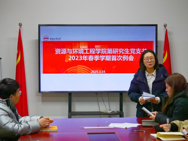 会上,研究生辅导员徐晨晨结合研究生党支部实际,对本学期党支部特色工作进行安排和动员,号召各党支部紧紧围绕学习宣传贯彻党的二十大精神,重点从加强政治理论学习、落实主题志愿实事、打造支部品牌活动等方面进一步提升研究生党支部工作质量,并就支部亮点活动提出了具体要求。研究生各党支部书记也就新学期工作计划做了积极发言,共同梳理每月工作重点,对党支部工作提出切实可行的意见。最后,各党支部书记分别就党员发展和转正流程、档案材料整理等问题进行了工作交流。
