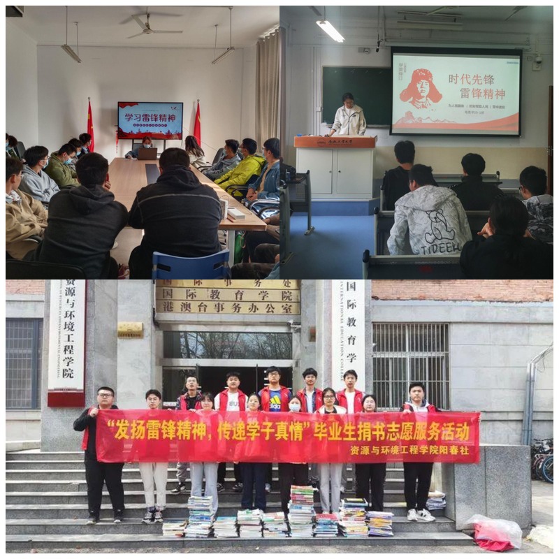 活动一开始,各班级团支部积极响应号召,在团支部内部举办了形式不一的宣传教育活动。地质学20-1班团支部与毕业生同学取得联系后,举办了捐书志愿活动,将专业书籍通过捐赠的形式重新再利用,传递了学子间的深情厚谊。地信20-1班团支部的同学们在新时代的背景下,各自分享了自己对雷锋精神的理解和诠释。地理信息科学21-1班团支部以学生寝室为单位成立雷锋互助小组,通过互助小组的形式引导同学们之间互相鼓励,促进学习提升。部分团支部还组织开展“雷锋精神”主题班会,借用纪录片、视频等形式,从各自不同的角度重温“雷锋先进事迹”,讲诉新时代的先锋楷模和他们的志愿故事,让雷锋精神在新时代重焕光芒。