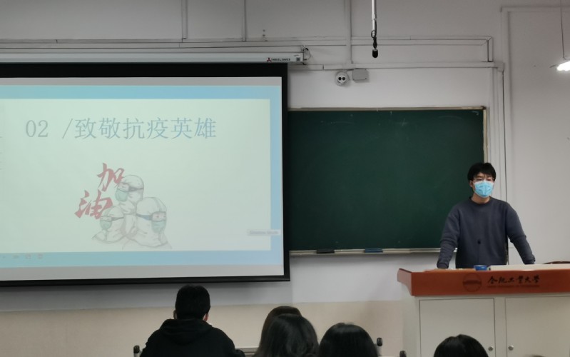 韦茂芷、蒋贤达、张雪妹、吴昊等14位同学围绕“致敬抗疫英雄”、“弘扬伟大抗疫精神”、“勇担时代责任,践行使命担当”三个方面进行了交流发言。其中张雪妹同学表示,提起抗疫英雄她便想到“逆行者”这个词,逆风而行,却向阳而生,让我们看到了中国人民坚韧的意志力和凝聚力,作为在校大学生,我们要遵守学校疫情防控制度和校园管理规定,每日按时完成健康信息填报,做好身边人的表率,承担起当代青年的使命。