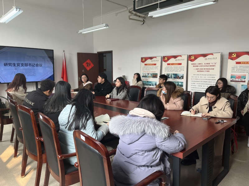 会上,徐晨晨强调党支部书记要增强工作的主动性、纪律性,通过认真组织“三会一课”,创新开展支部活动加强对支部党员的教育和管理,把研究生党支部建成能带头在学术上攻坚克难的团队、稳定安全保障的主力军,切实发挥好基层党支部战斗堡垒作用和党员先锋模范作用。研究生各支部书记也就新学期工作计划做了积极发言,共同梳理每月工作重点,对本学期党支部工作提出了切实可行的意见。研究生党支部将根据已有工作安排,基于研究生群体的特点,不断创新工作内容与工作方式,打造支部特色品牌活动,切实提升党支部的凝聚力和战斗力,促进党支部工作制度化和规范化,扩大党支部服务范围和职能覆盖面。
