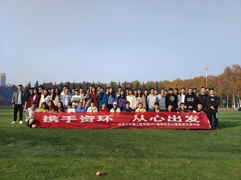 2021年11月18日,冰球突破豪华版官方网站在屯溪路校区西操场开展了以“携手资环、从心出发”为主题的新生心理素质拓展活动,参与成员为2021级资源与环境专业全体研究生。
