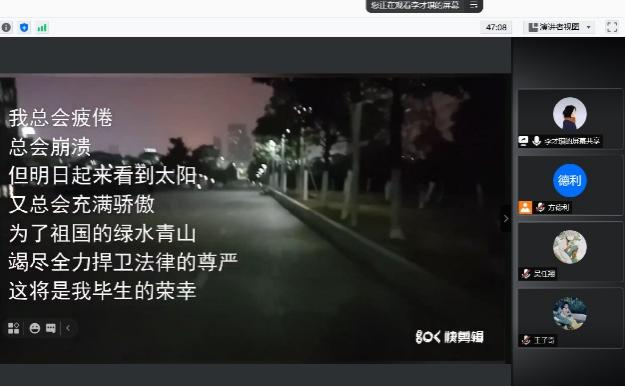 共有三名选手晋级本次决赛,在本次决赛中,选手答辩思路清晰,主题鲜明。吴任翔力排众议,坚定着自己当游戏策划师的决心。李才琪热爱生活,爱护环境,表达着自己对环境律师的向往。马晶晶勤奋好学,乐于成长,阐述着自己希望成为一名大学讲师的初心。其间,更有王子奇导员对各位选手精彩表演的点评,表达着自己对同学们目标清晰,未来有望的憧憬与赞许。