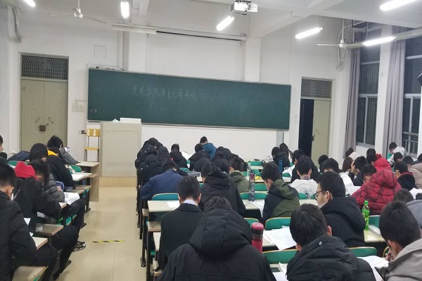为了进一步提高我院学生学习能力,培养良好的学习习惯,以考促教、以考促学,2019年12月25日晚,资环学院2019级利用晚自习时间在多个晚自习教室内举行本学期第12期周测,本次考试试卷由勘查19-1班学习委员宋丽荣出题,过程中由各班“临时班主任”监考,考试内容为大学数学,试卷由各班学习委员轮流根据本周及近两周所学知识进行命题,着重考察基础知识。