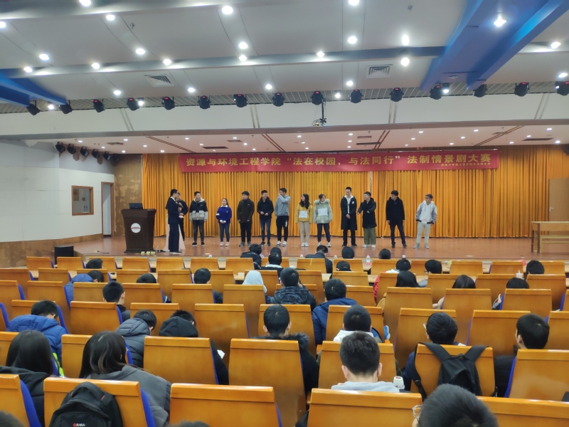 12月9日晚7:00,冰球突破豪华版官方网站学生会生活部“法在校园,与法同行”法制情景剧大赛在翡翠湖校区图书馆报告厅成功举办,资环学院全部大一班级参赛,全体2018级同学观看比赛,学生会主要负责人担任评委。