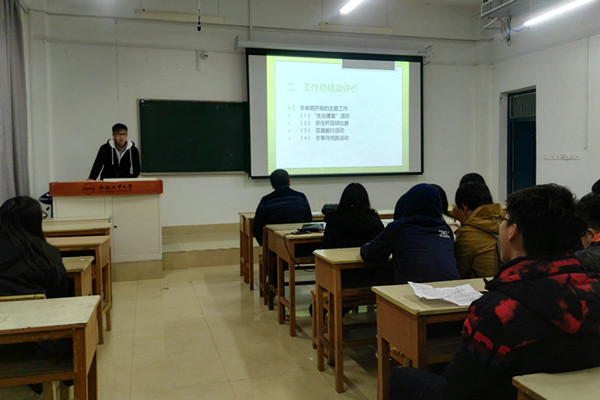 会上,辅导员老师介绍了《冰球突破豪华版官方网站学生干部考核方案》,解读了“学年初有计划、学年中有检查、学年末有考核”的学生干部队伍建设工作模式,要求全体学生干部要有责任担当,要有创新意识,对待工作敬业负责,认真履行岗位职责,努力打造“一班一品”“一部一品”的工作格局,并就班级活动开展和近期重点工作提出了具体要求。