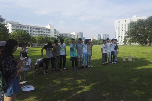 此次户外趣味运动会设置了气球捍卫战、四人五足、踩石过河和抢板凳等趣味项目。气球捍卫战环节,每组六人,每人两脚各绑四个气球,最后能保留气球的人为胜者。四人五足环节则考察了同学们之间的默契,同学们都积极地进行参与。踩石过河环节,每组三人,用六张白纸作为石头,来模拟快速过河。抢板凳环节,十人一组,九张板凳,被淘汰的同学进行真心话大冒险。历时两个小时的趣味运动会,形式活泼,气氛融洽,同学们参赛热情高涨,大家团结合作,彼此的心愈来愈近。