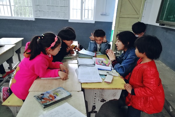 三名志愿者于4月8日早十一点安全达到砂坝小学,下午志愿者们开始以辅导孩子们的作业,解决孩子们提出的问题,并以鼓励孩子们认真学习为目的开展了教育教学工作,与孩子们一起度过了充实的下午。4月 9日上午志愿者们以激发孩子们的读书欲望为主要目的,带着孩子们学习了唐代诗人孟郊的生平及诗歌。为加深小学生对中国传统文化的理解,并向他们介绍了清明节,端午节等中国传统节日的来历以及习俗等。课堂上孩子们积极参与志愿者们的有奖问答,课堂气氛热烈有趣。上完课后,志愿者带领同学们一起读故事,品味透过文字所感受到的另一个美妙的世界。
