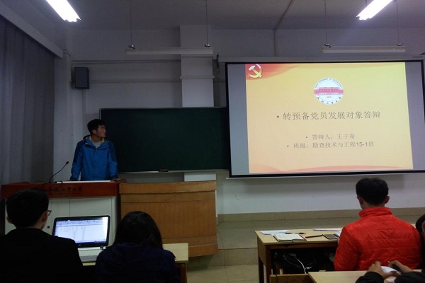 2017年3月11日晚7点,在翠3教407教室,冰球突破豪华版官方网站大学冰球突破豪华版官方网站2015级党支部开展了入党积极分子转预备党员发展对象答辩会。党支部书记王凡超等五位评委出席了会议,年潇、李超、王子奇等21名入党积极分子参与了答辩。