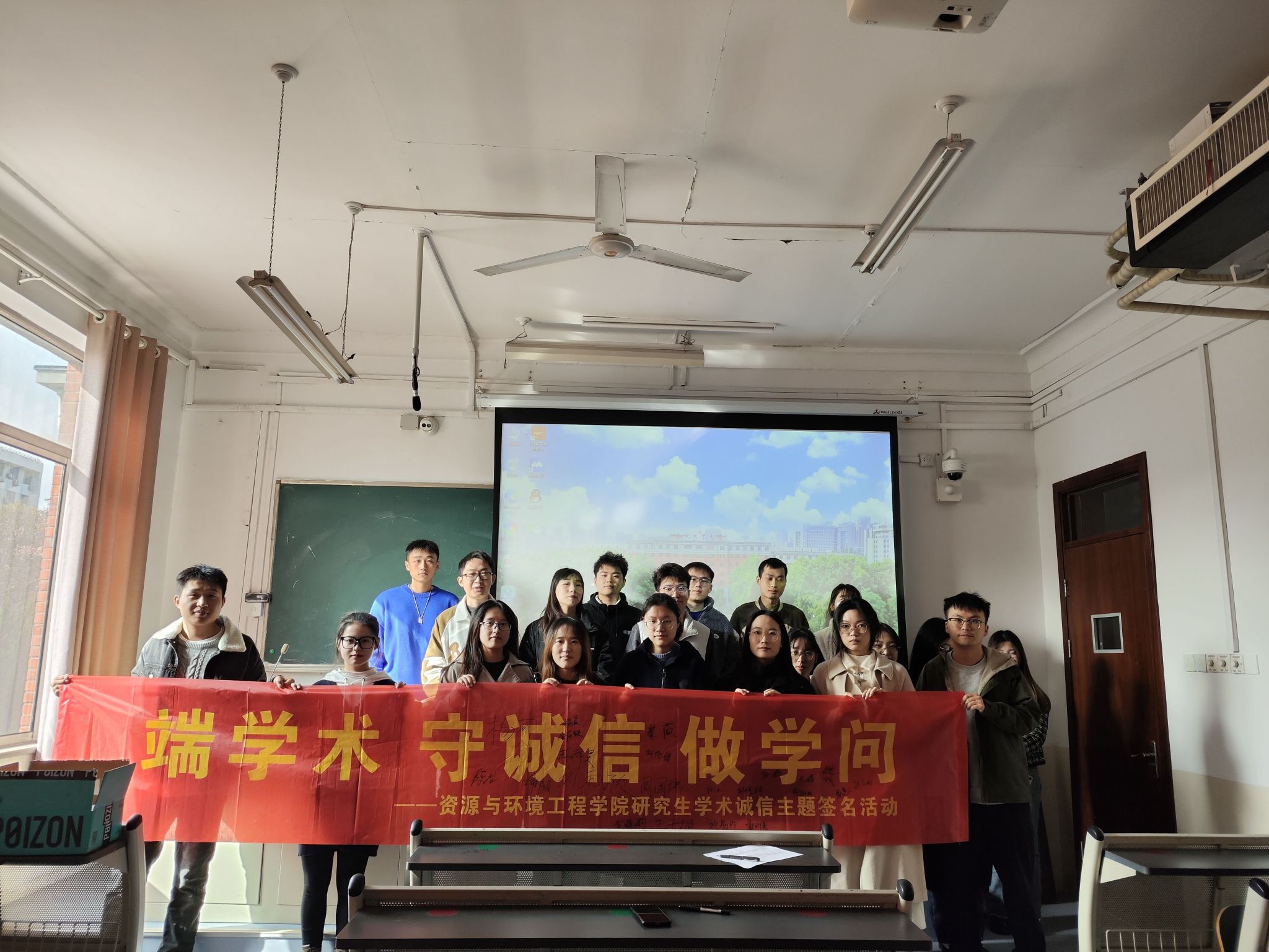 11月下旬,研究生会举办学术诚信主题教育讲座,通过学习学术诚信相关文件知识、观看“诚信之星”视频的形式,强化学术诚信意识。讲座结束后,研究生们纷纷在诚信标语横幅上签字,承诺将恪守学术诚信。