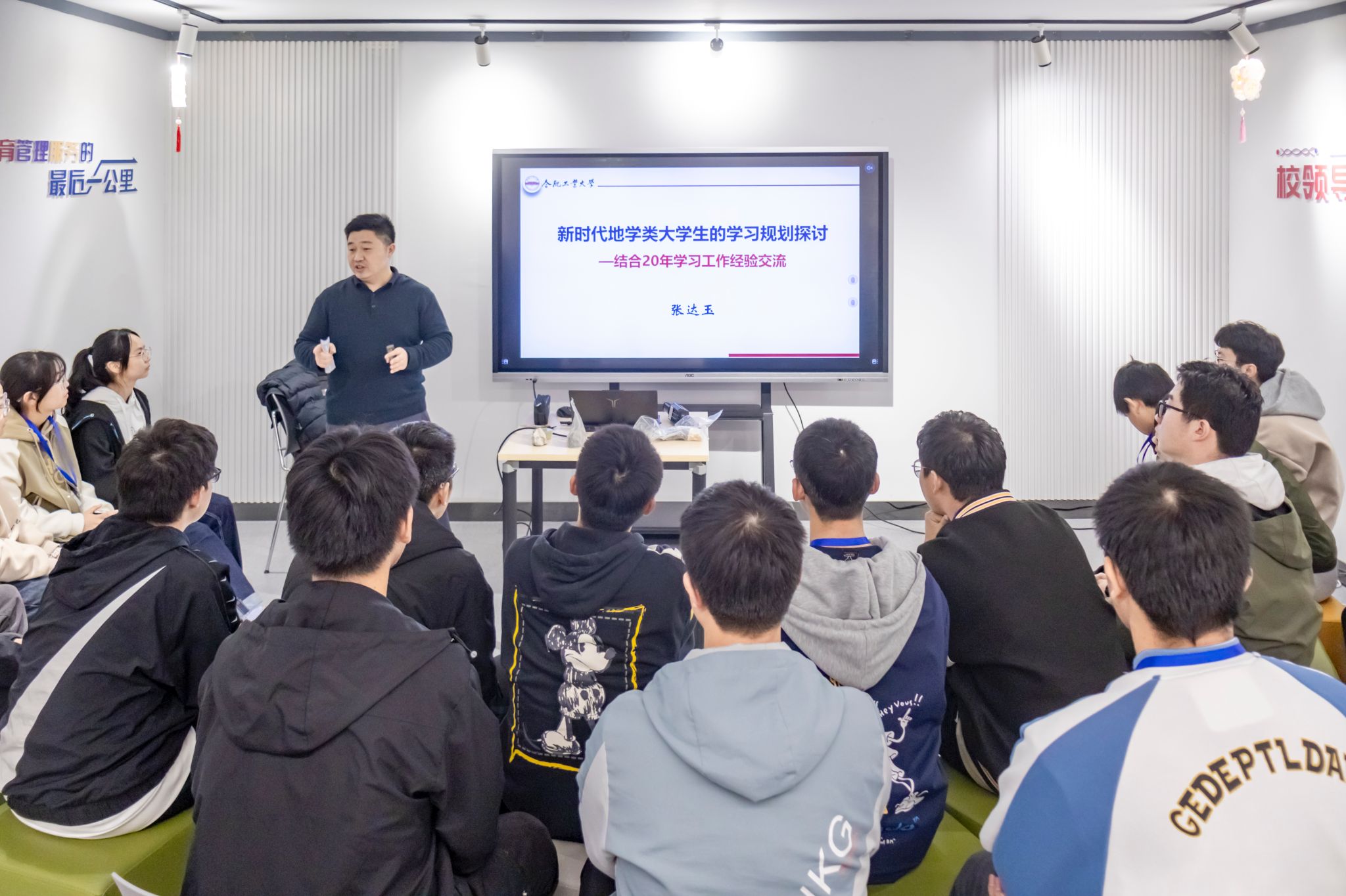 为帮助2023级新生更好了解专业,提升专业认知,规划发展方向,11月21日晚,冰球突破豪华版官方网站在七号楼学生社区开展“新时代地学类大学生的学习规划探讨”主题讲座。学院资源系副主任张达玉教授应邀担任主讲人,2023级地质学和资源与勘查工程专业全体学生参加本次培训。