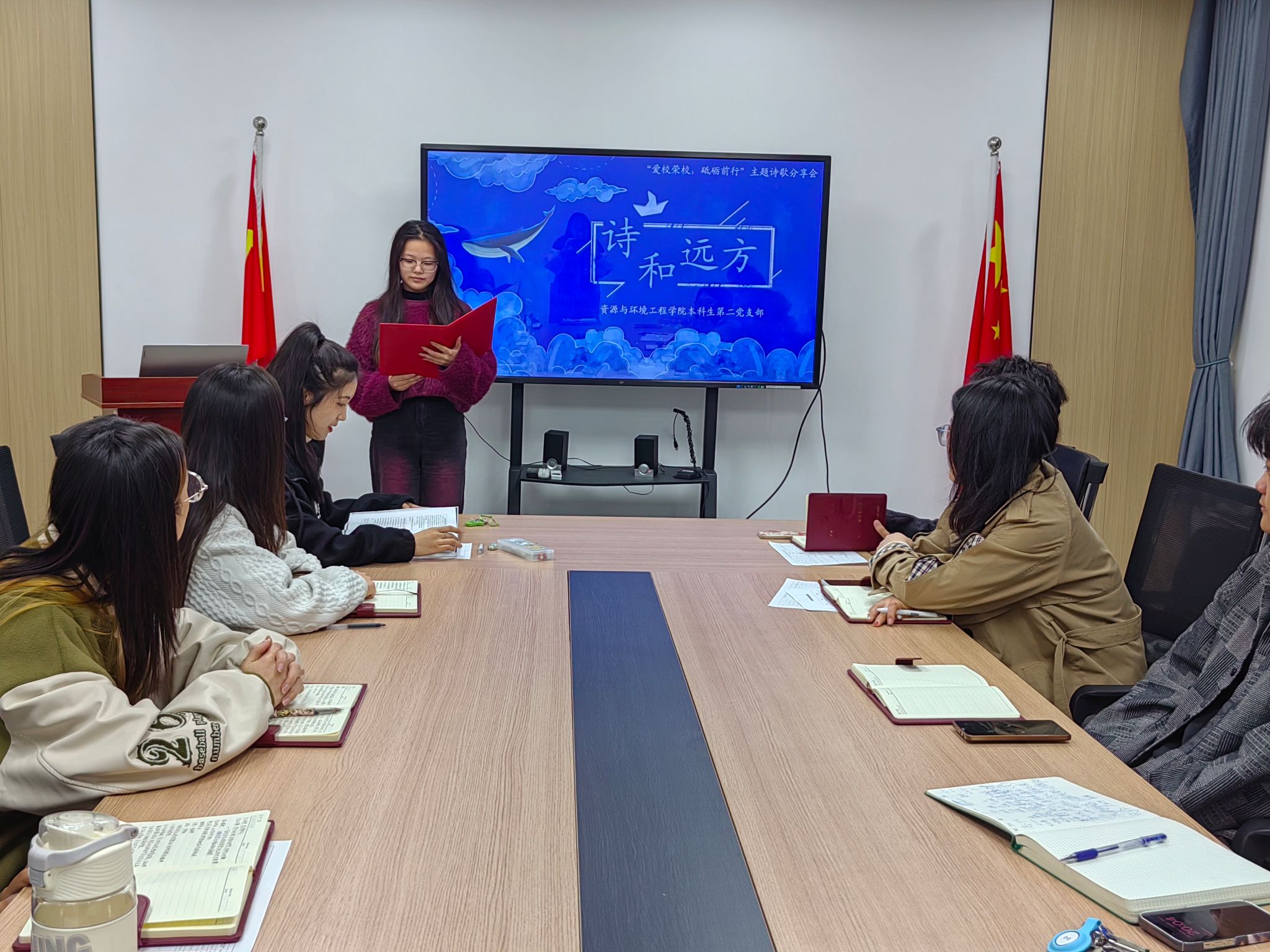 支部成员逐一朗诵自己创作的诗歌作品,赞颂工大校园美景,感念工大培养之恩,回忆工大流光岁月,用纸笔描摹爱校之情,用声音颂出荣校之志,再现了工大学子从满怀憧憬步入工大,到践行使命融入工大,再到依依不舍告别工大的心路历程,抒发了工大学子对母校的感恩之情。