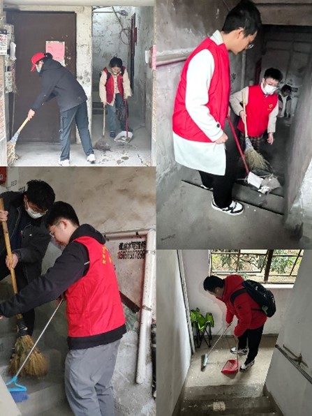 活动开始前,所有志愿者分成四个小组,每个小组负责清扫老房屋两个单元的楼道及走廊。他们认真清扫楼道里的各种杂物和灰尘,处理堆积尘封的杂物和垃圾。一下午的时间里,志愿者们齐心协力,共同完成了八个单元楼的清扫工作,各处楼道焕然一新。