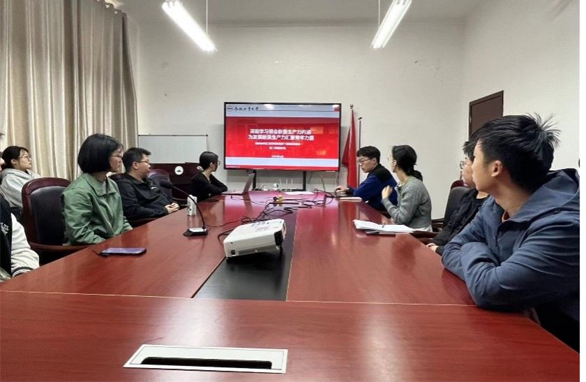 在交流讨论环节,同学们纷纷围绕自己对新质生产力的理解,结合日常学习生活中的思考,对如何推动科技高质量创新发展展开了热烈讨论。22级地质学博士生张苗表示,作为新时代青年要依托专业优势,提高新质生产力和科技创新工作的认识,敢做“领头雁”,敢下科技创新“先手棋”,充分发挥青年榜样先锋作用。21级遥感科学与技术本科生李方表示,随着科技不断发展,“新质生产力”这一概念早就融入在我们的日常生活当中,当代大学生应该在日常学习中勤于思考、勇于创新。