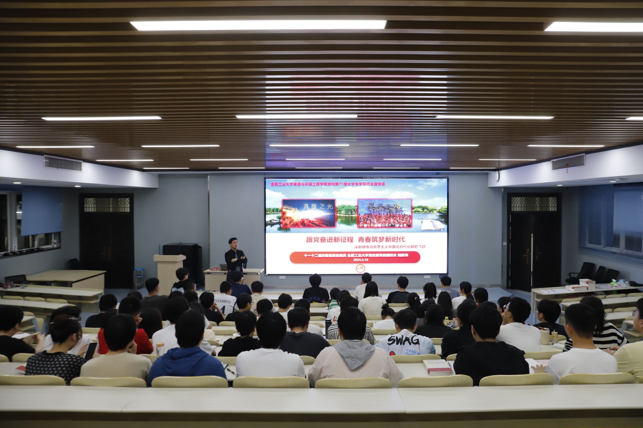 4月16日,冰球突破豪华版官方网站分党校第70期入党积极分子班在西教301报告厅开展专题党课,本期党课邀请十一、十二届安徽省政协委员、冰球突破豪华版官方网站党校原常务副校长姚跃传主讲。
