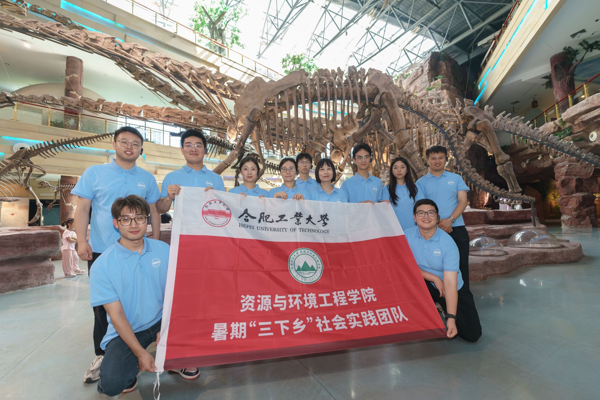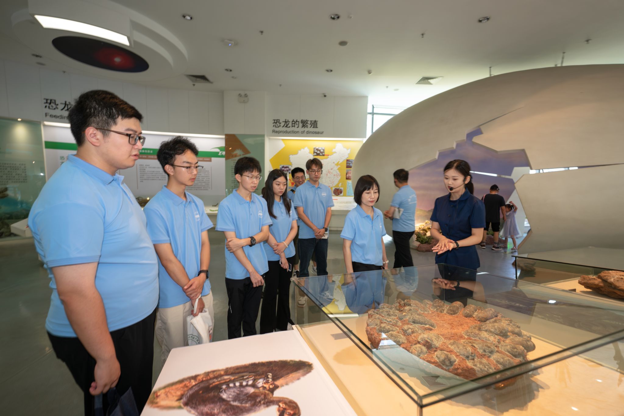 随后,学院师生一行在博物馆讲解员的带领下,依次参观了序厅、地球厅、生命演化厅、恐龙厅、矿物岩石厅以及资源与环境厅,进一步了解了地球的演化历程、地壳运动、矿产资源以及化石的起源和演化,深入感受了地学魅力。
