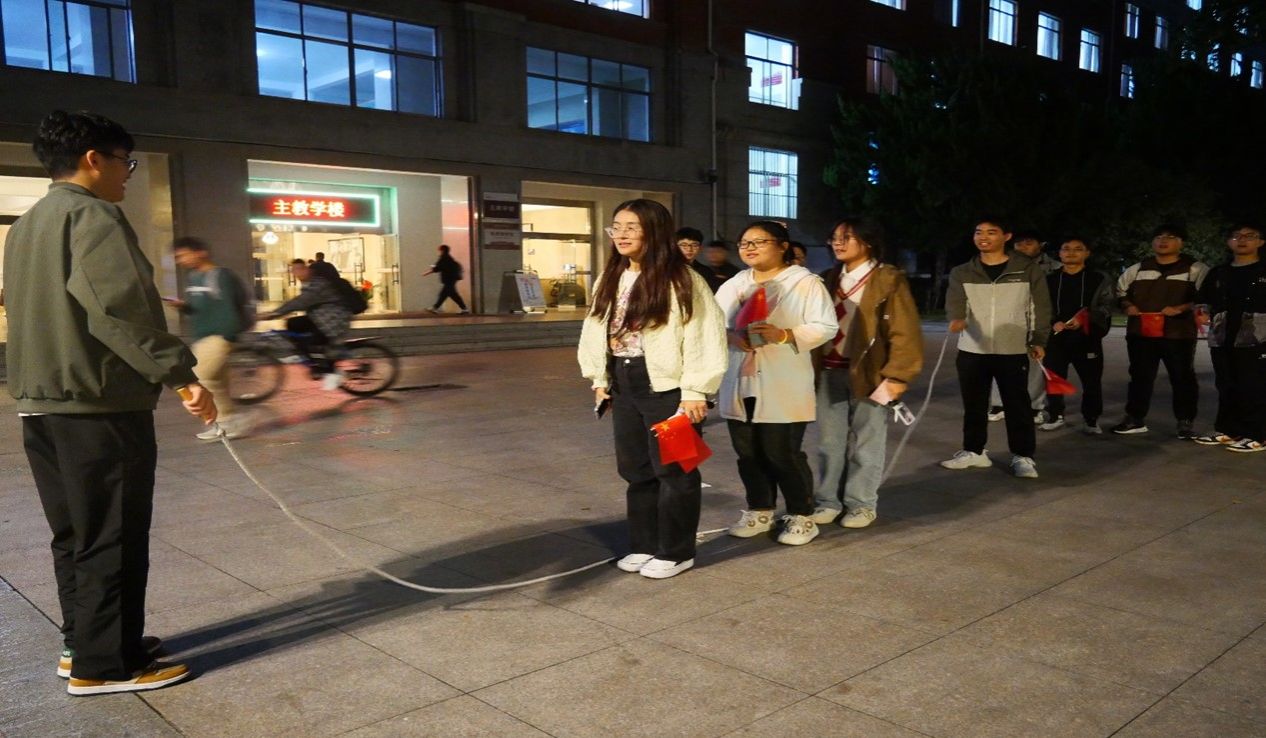 夕阳的余晖渐渐褪去,操场上已是人流涌动,同学们共同期待着活动的开启。在操场上,同学们积极参与、有序签到,获得“荧光手环”和“夜跑门票”,加入这场荧光派对。一声令下,活力奔跑。同学们的身影在夜色中穿梭,如同一道道流星。本次活动全程覆盖西操场、东操场和主教学楼三大区域,设置知识问答、投壶射箭、集体跳绳、巧踢毽子、套圈夺宝等五个关卡挑战点,多样化的任务设计,不仅增添了夜跑的乐趣,也充分展示了工大学子的青春风采与无限创意。同学们为集齐五枚印章,勇闯层层关卡。随着夜色加深,活动逐渐步入了尾声。完成所有的打卡任务后,同学们再次汇聚到操场,参与激动人心的抽奖环节。伴随着一张张奖券被抽出,欢声笑语与掌声交织在一起,闪着点点星光和荧光的快乐夜晚就此结束。