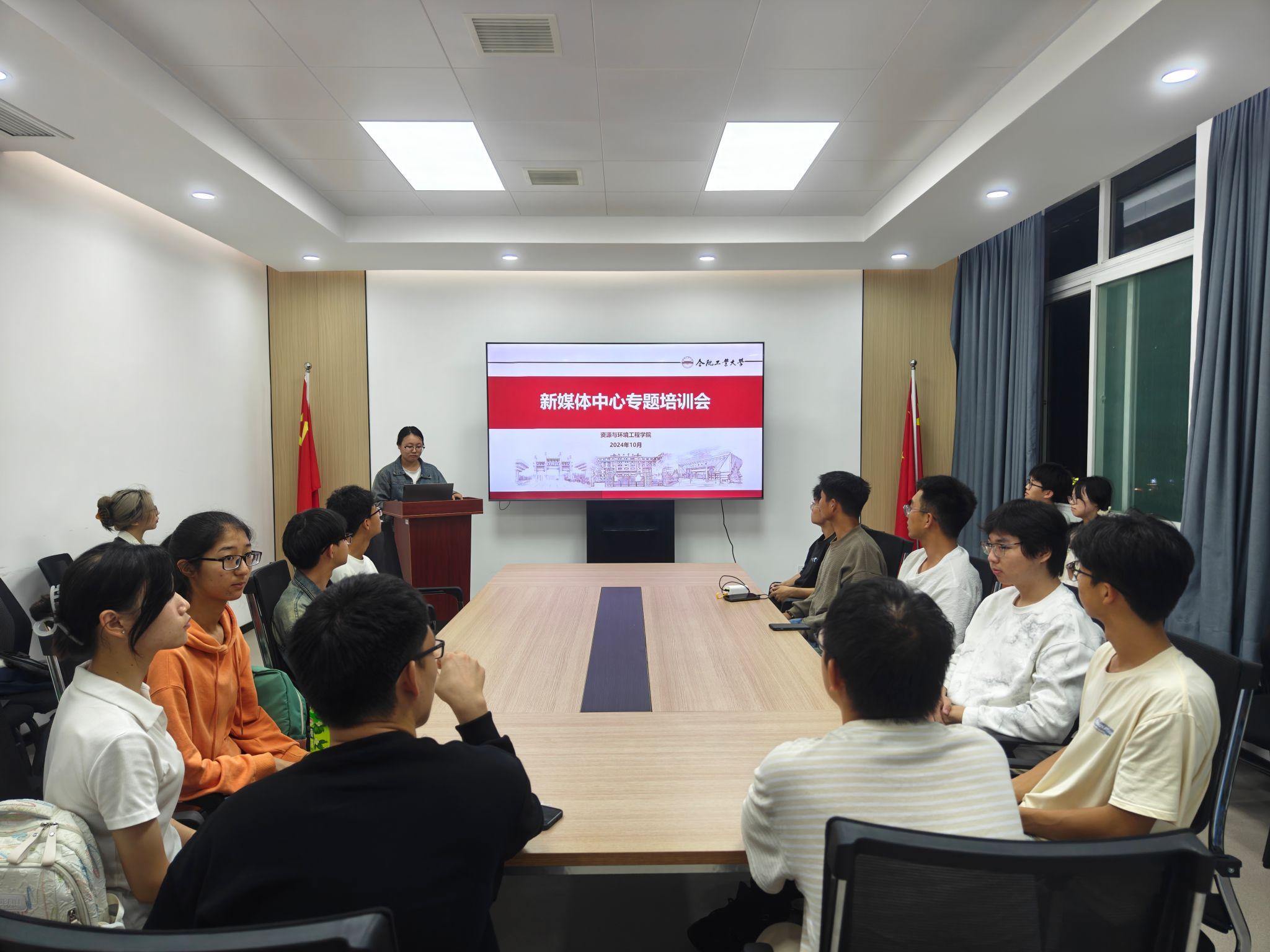 10 月 16 日晚,资环学院新媒体中心新学期第一次技能培训会在304会议室举行。指导老师,2024级辅导员王正,新媒体中心全体成员参会。
