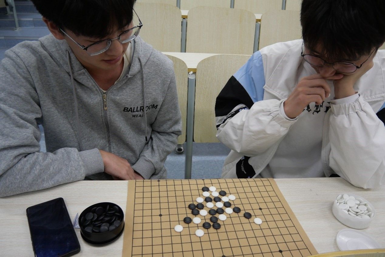 本次活动共有80名五子棋爱好者参加,比赛分为预赛、半决赛和决赛三个阶段,采用“三三禁手”规则。五子棋比赛不仅仅体现操纵黑白棋子的技巧,更是个人素质和思维能力的考验。比赛现场气氛高涨,同学们在棋盘上激烈交锋,在比赛中沉着应对。双方你来我往,你攻我守,在黑白交错中进行着实力的碰撞,每一步落子都体现出思考后的自信。比赛中,每位选手都严格遵守比赛规则,尽情地展现出自身的棋艺和智慧。随着比赛的稳步进行,经过一番激烈角逐,从预赛到决赛,四名优秀选手一路晋级,脱颖而出,最终摘得桂冠,将代表学院参加十院五子棋联赛。