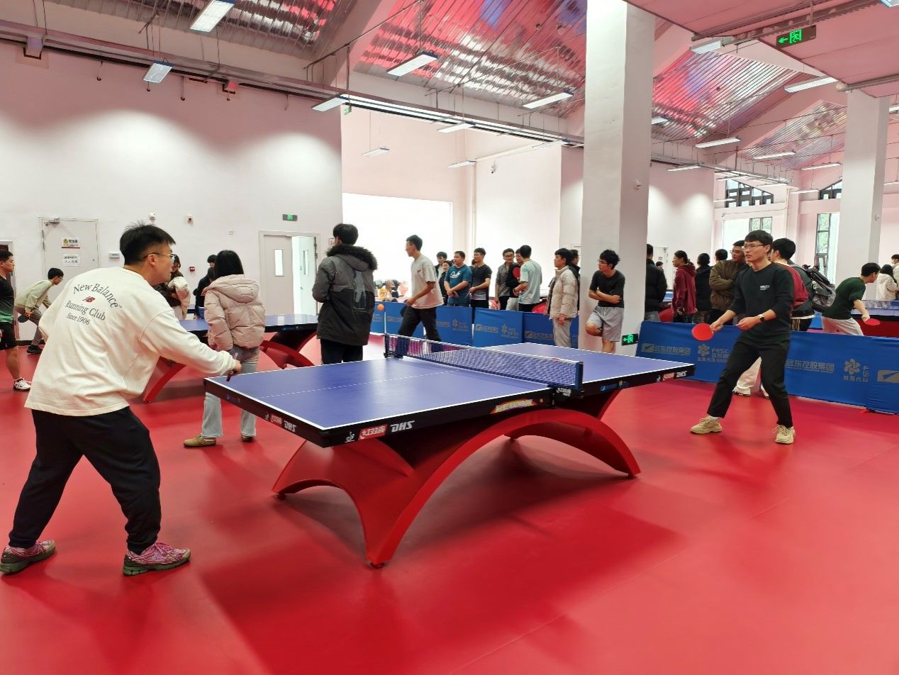 比赛分为小组赛和淘汰赛两个阶段。比赛以团体赛的方式进行,分为男子单打、女子单打和混合双打。各学院分别选派一支队伍参赛,随后按照比赛项目分组进行学院间对抗,采用三局两胜赛制,淘汰赛采用五局三胜赛制。资环学院11名研究生代表参加此次比赛。比赛过程中,选手们发球挥拍、正手反手,每一个动作都透露出对乒乓球运动的热爱和专注。场边的观众们也被选手们的精彩表现所吸引,纷纷为他们呐喊助威,现场气氛热烈而紧张。资环学院最终因选手人数的差距,遗憾止步四强。但参赛队员饱满的热情和高昂的斗志,诠释了资环学子的竞技水平和团队精神,展现出研究生们积极向上、全力以赴的精神风貌。