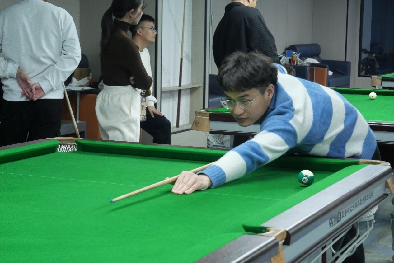 为了丰富研究生校园生活,促进同学相互交流,培养研究生的体育精神,12月8日下午,冰球突破豪华版官方网站研究生会在屯溪路校区星火台球俱乐部举办了“热情碰撞 青春激扬“研究生主题台球比赛,学院近50名研究生齐聚一堂、以球会友,敬青春、竞台球。