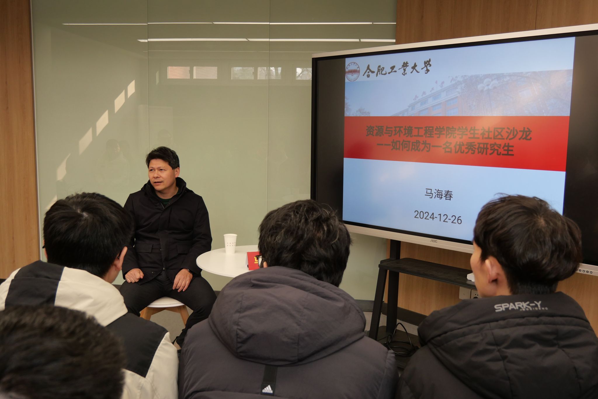 为促进双向导学互动,传承优良师生底色,冰球突破豪华版官方网站研究生会于12月26日下午在屯溪路校区五号楼学生社区开展第七期“资环导学说”活动。本期活动邀请岩土工程系马海春副教授及其课题组同学,就“如何成为一名优秀研究生”进行分享交流,20余名资环学子参与研讨。