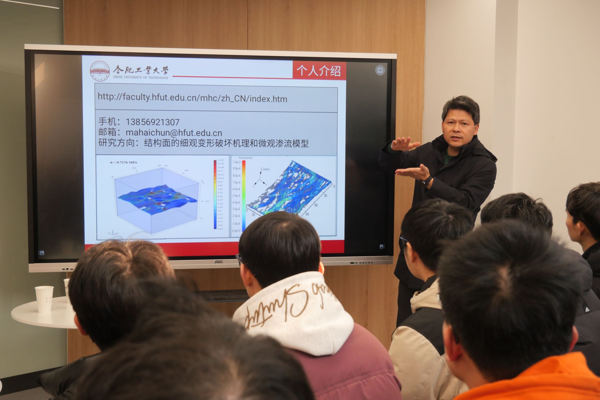 马海春老师围绕科研经验、学习建议、未来寄语等方面与同学们深度交流。他首先结合自身多年学习工作经验,从岩石结构面变形、裂隙渗流、结构面的细观变形破坏机理、结构面的非线性渗流规律、岩石流固耦合相互作用等方面详细讲述了目前研究内容及成果。马老师认为优秀科研成果的获得需要经历加入良好学术团队、选择合理学术问题、养成活跃科研习惯、推进丰硕科研成果四个阶段,并基于研究生研一上到研二下四个学期的学习规划提供了针对性建议。活动中,马老师寄语研究生,希望大家回首科研方向历史、培养科研兴趣,瞄准科研问题目标、探寻科研乐趣,立足科研方法创新、总结科研妙趣,着手科研内容进步、体会科研知趣,心思科研成果产出、感受科研情趣。