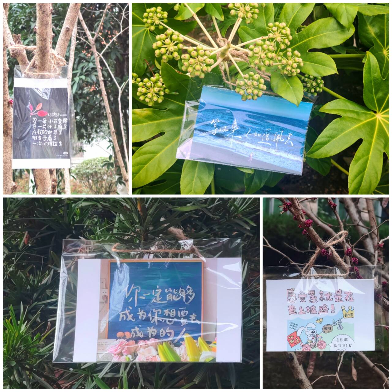 活动期间,学院资心社成员在屯溪路校区乒羽中心门口、主教学楼、193咖啡厅等区域随机布置疗愈主题图片。参与者需寻找4-6张图片并拍照打卡,并在“合工大智慧学生社区——斛兵心语”平台“拾光而行,绿洲涤灵”板块上传打卡照片并配文原创感悟。活动共收到投稿632份,内容涵盖校园春景记录、学习生活感悟及对未来的积极期许,其中“香樟新芽破土而生”“石板青苔静待花开”等作品引发广泛共鸣,经审核遴选出40份优秀作品。