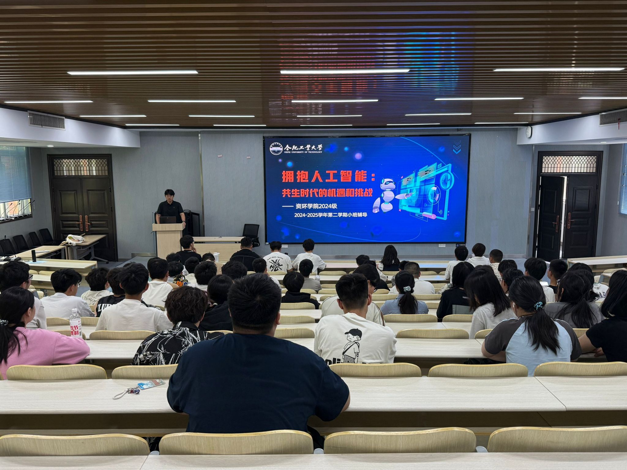 近日,资环学院2024级举行“智创未来启新章,创新思维拓视野”主题小班辅导,引导学生理解国家战略布局、提升AI思维素养,会议由辅导员王正主持,2024级全体学生参与。