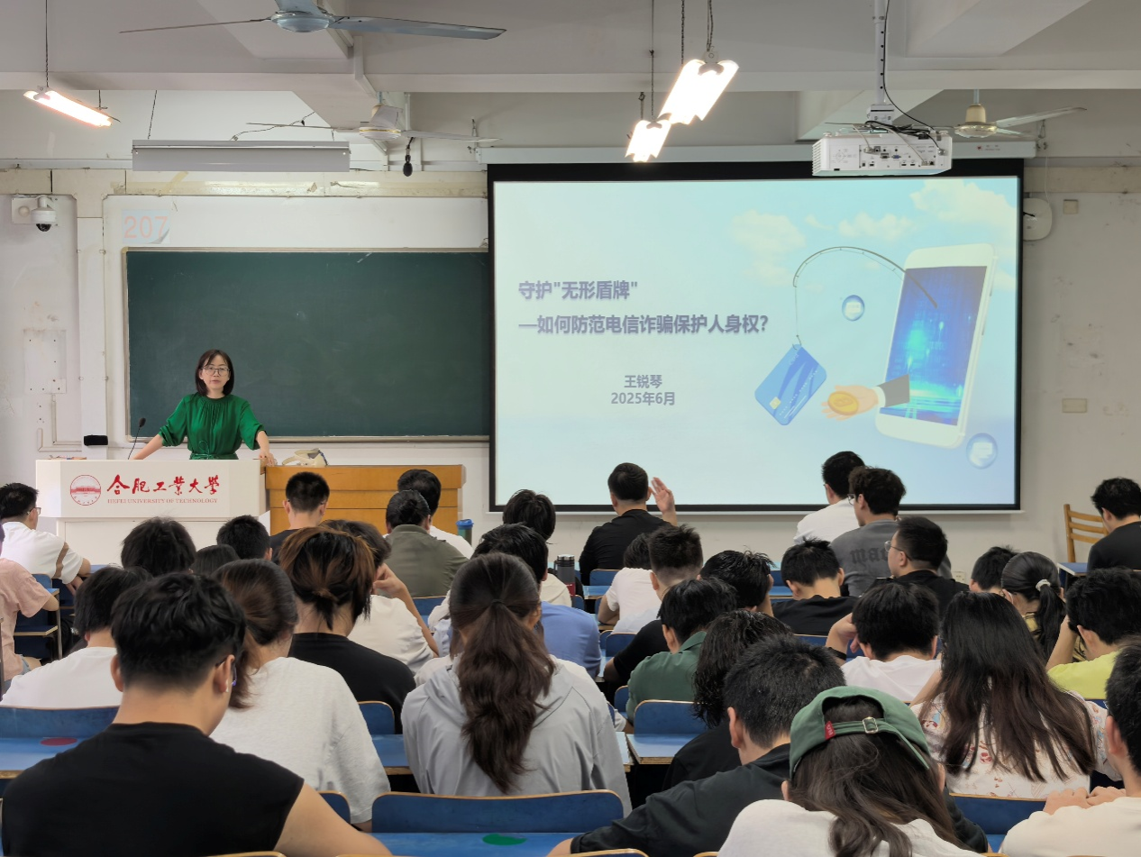 班会上,辅导员王锐琴以“开盒挂人”“AI换脸”“恶意修图”等骗局为例,结合《民法典》详解肖像权、隐私权等权益保护要点。她通过真实案例警示:“泄露个人信息不仅可能导致财产损失,更可能被用于伪造身份实施犯罪。”班会还设置情景模拟,引导学生辨识诈骗话术与侵权行为,普及“不轻信、不转账、不泄露验证码”原则。