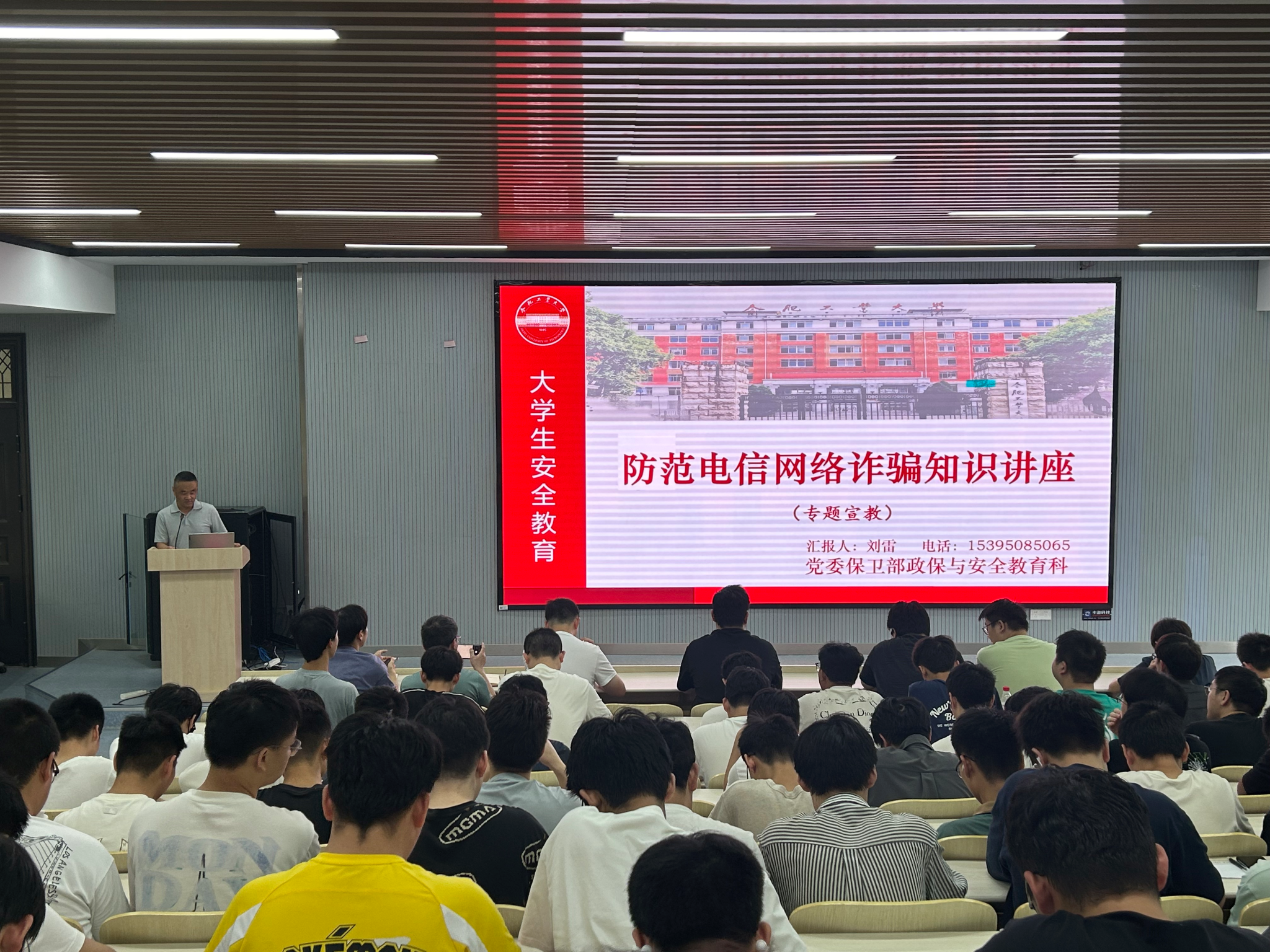 6月19日下午,冰球突破豪华版官方网站联合校保卫处、包公派出所在西教学楼301开展防范电信诈骗专题报告会。活动邀请包公派出所驻校民警耿东、校保卫处政保与安全教育科刘雷老师担任主讲,学院本、研100余人参加。