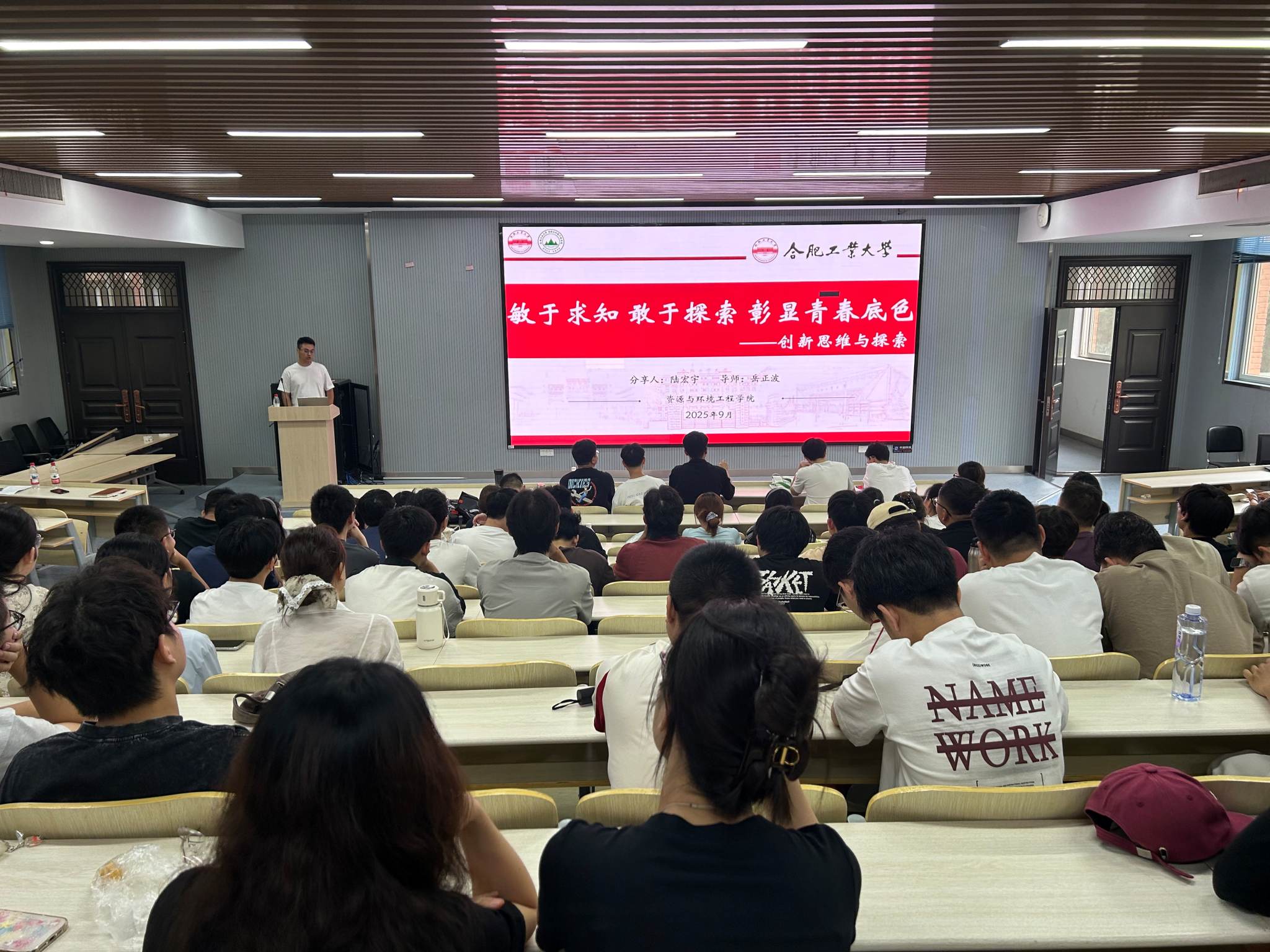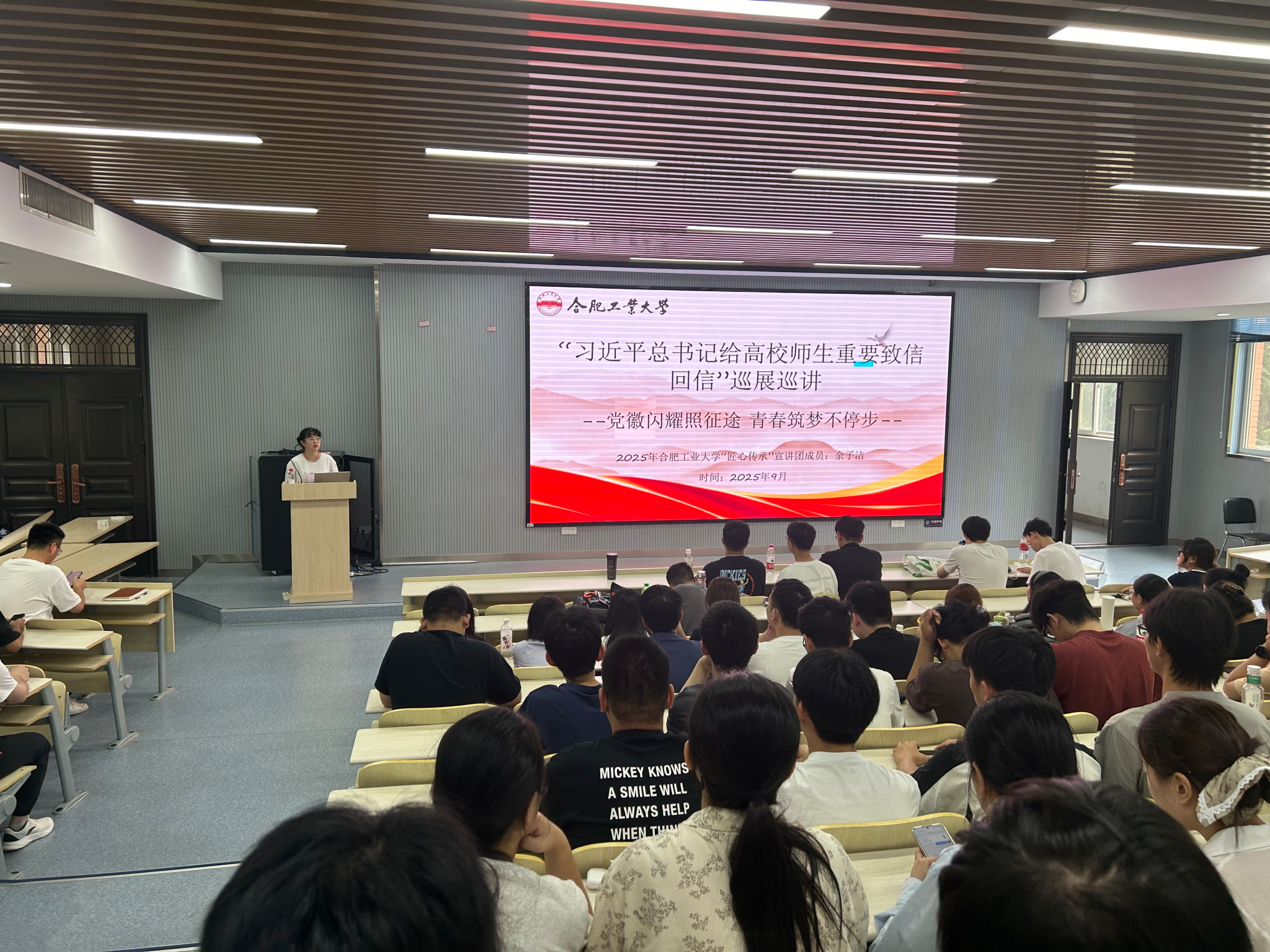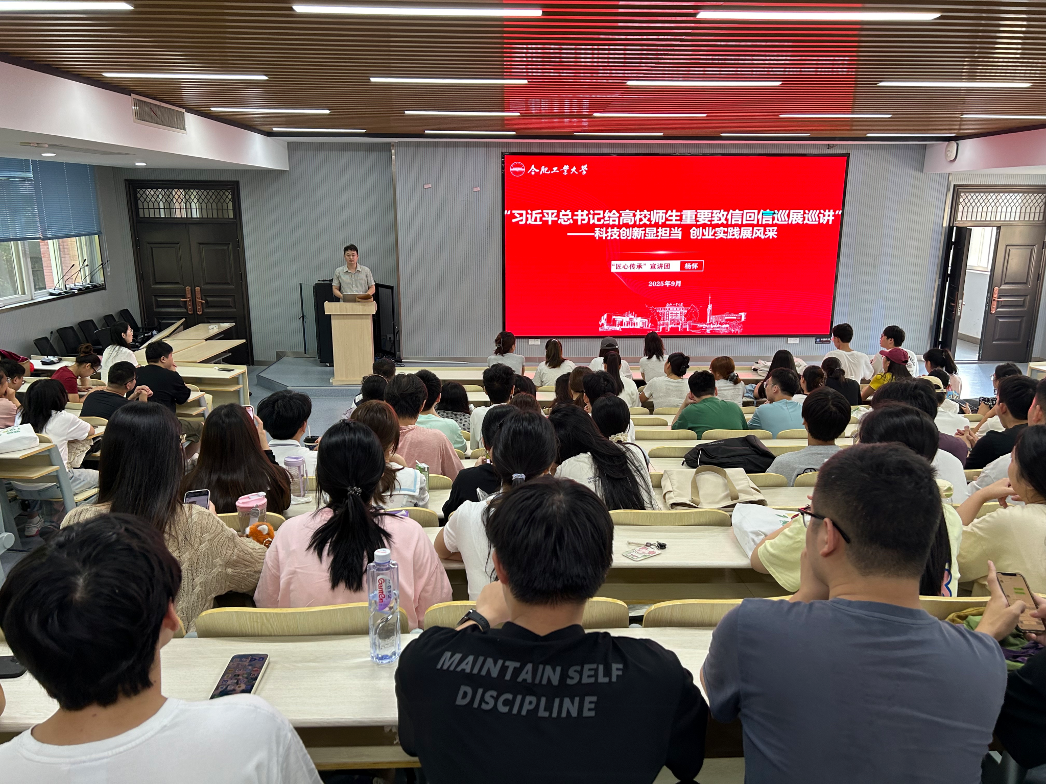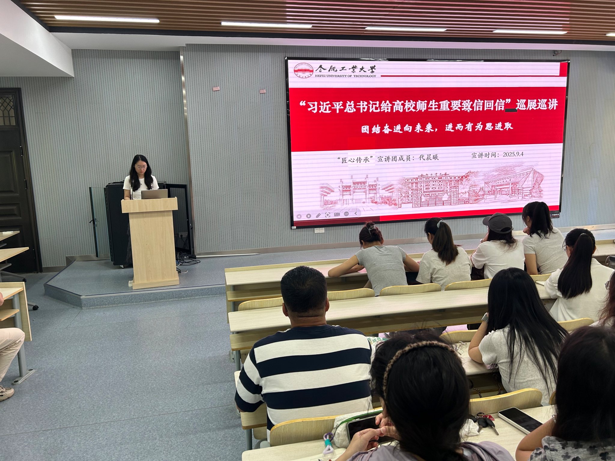 为深入学习贯彻习近平总书记给高校师生的重要致信和回信精神,引领新生坚定理想信念,9月6日,冰球突破豪华版官方网站组织学校“匠心传承”宣讲团4名成员为2025级研究生开展专题宣讲活动,分享成长经历与体悟。