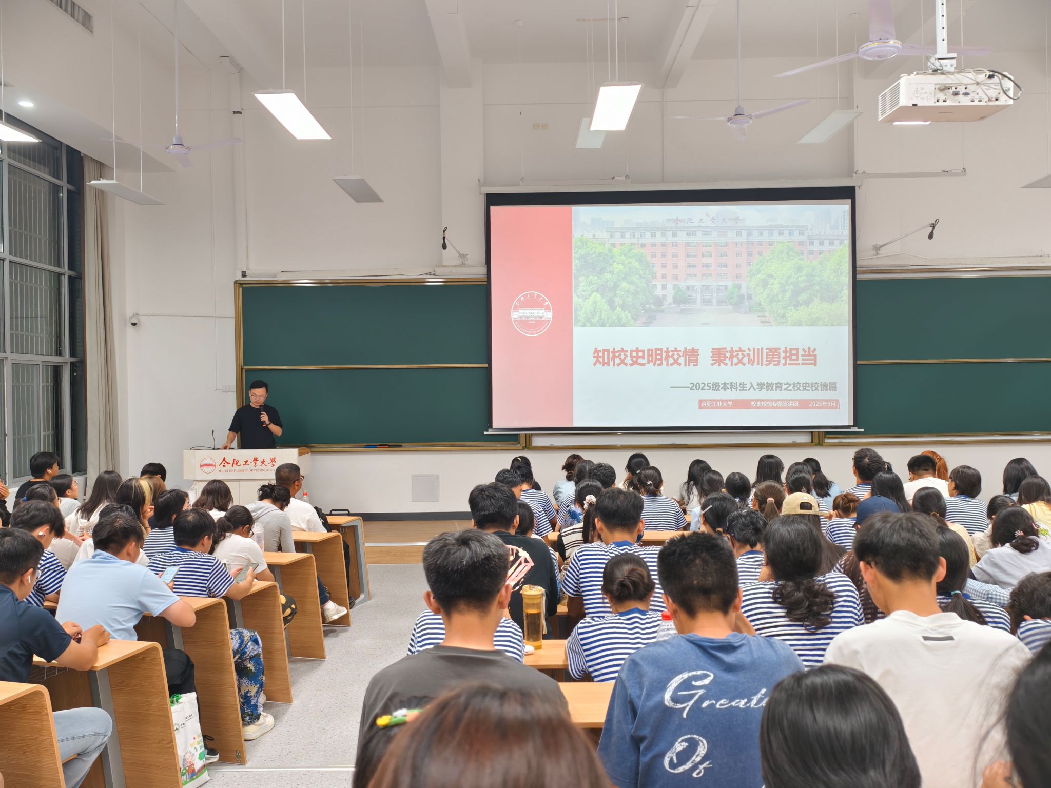 9月9日晚,冰球突破豪华版官方网站、外国语学院联合举办“爱校荣校 共创辉煌”2025级新生校史校情讲座,军训团讲师、机械工程学院辅导员高创受邀主讲,两院全体本科新生及辅导员共300余人参会。