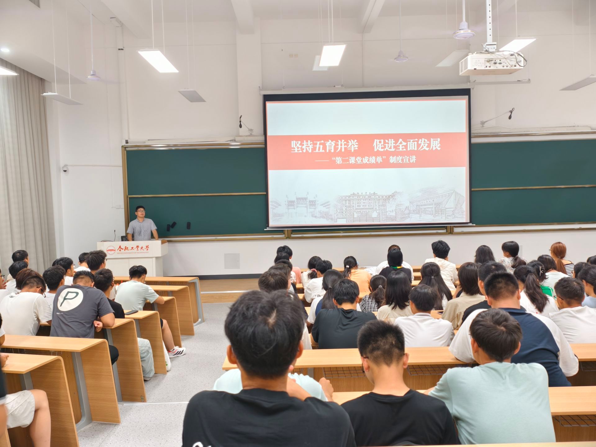 9月15日晚,资环学院2025级本科新生“第二课堂成绩单”制度宣讲会在翡翠湖校区二教101教室举行,院团委书记朱大勇老师担任主讲,2025级全体本科新生参会。