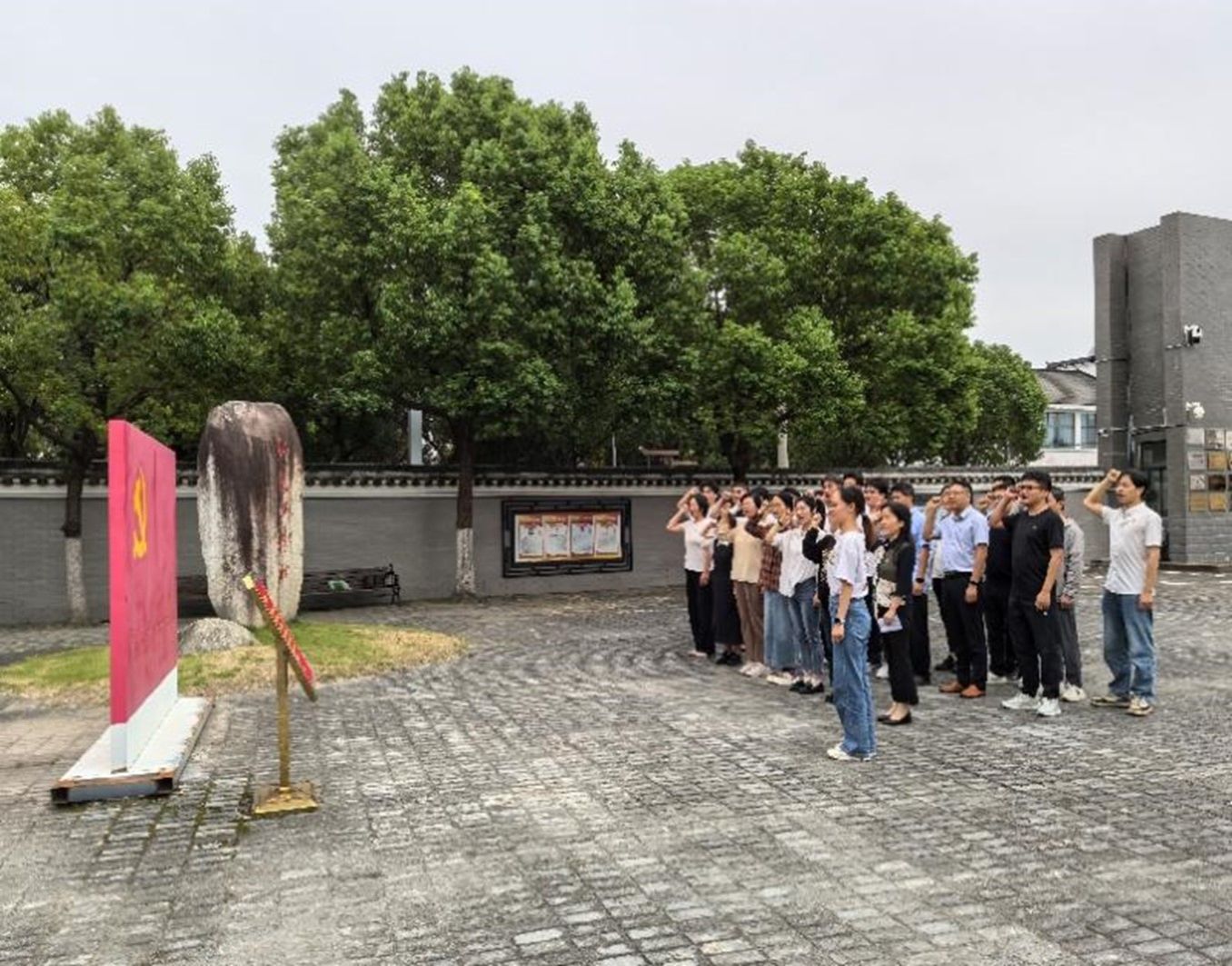 师生们依次参观风驰瑶岗、总前委旧址等展厅,珍贵的历史图片、详实的文献资料、饱经沧桑的革命文物,再现了渡江战役的波澜壮阔,生动展示革命先辈为了人民解放而英勇奋斗的崇高精神。随后,师生们在纪念馆放映厅观看了渡江战役专题纪录片,深情缅怀革命先烈的丰功伟绩,回顾党的光辉奋斗历程。走出纪念馆,在庄严肃穆的总前委旧址广场,全体党员面向党旗重温入党誓词。声声誓词铿锵有力,表达了党员们对党忠诚、为共产主义事业奋斗终生的坚定信念。