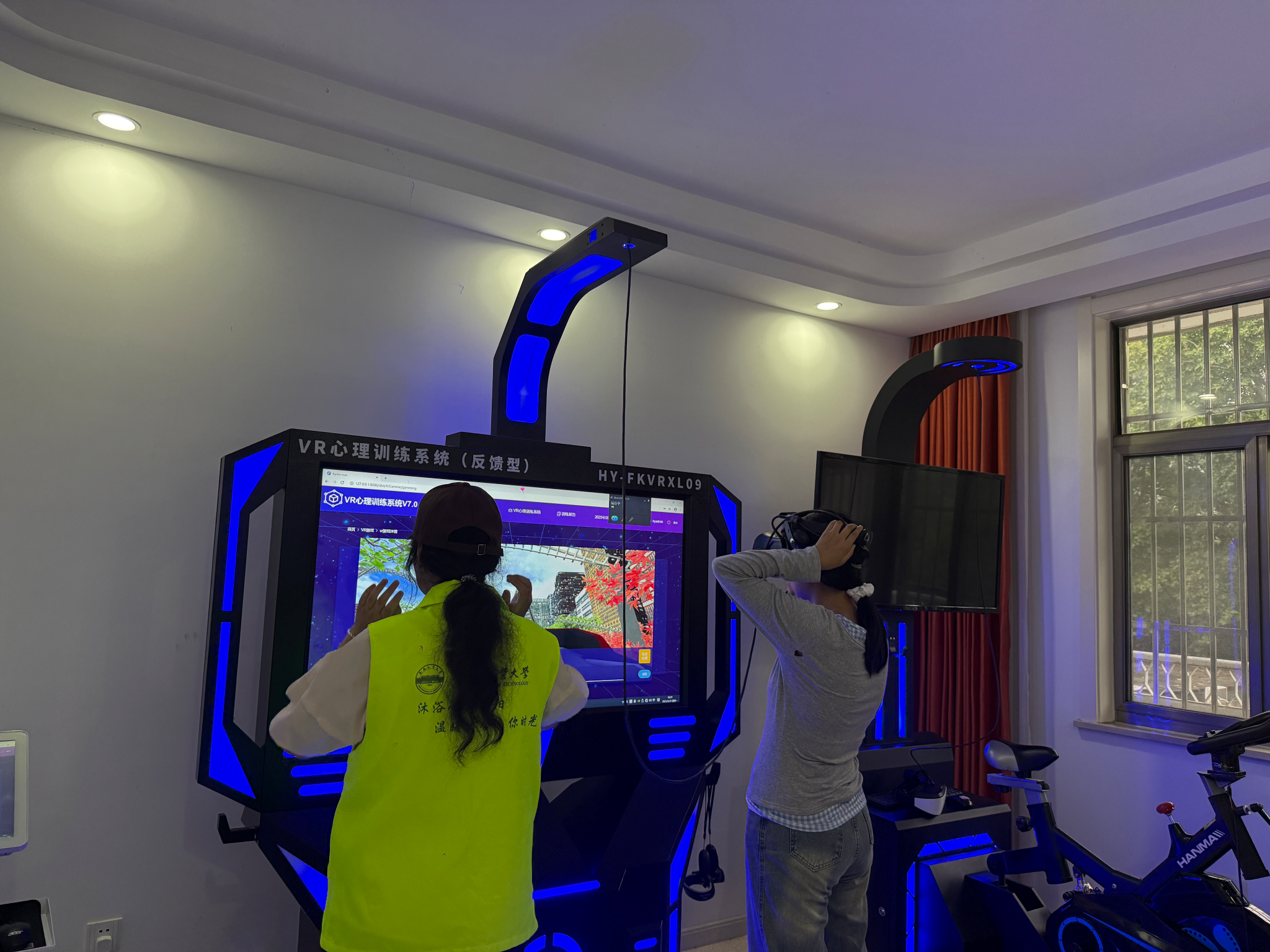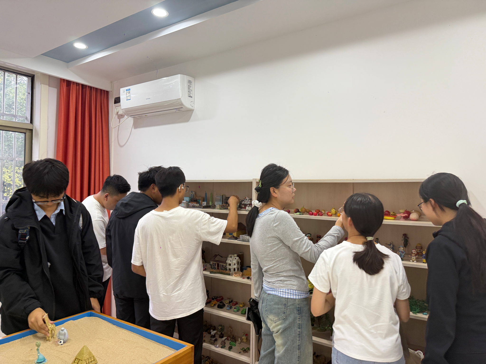 在中心工作人员的细致讲解下,同学们依次参观了团体辅导室、情绪宣泄室、冥想室、沙盘游戏室以及个体咨询室,直观地感受心理健康中心的专业环境与服务流程。活动中,同学们还踊跃体验了虚拟骑行、沙盘等调节情绪的专业设施,在轻松愉快的互动中进一步加深了对心理健康重要性的理解。