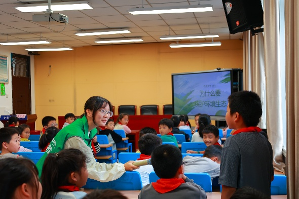 活动中,志愿者围绕“地质灾害”与“环境保护”两大主题,以“防灾源于护境”为主线,通过图文展示、案例讲解等形式,系统介绍地质灾害类型与危害,引导孩子们树立防灾意识,践行环保理念。在互动问答环节,孩子们踊跃分享“护绿”小故事,在轻松氛围中加深了对地球科学的认知与保护意识。