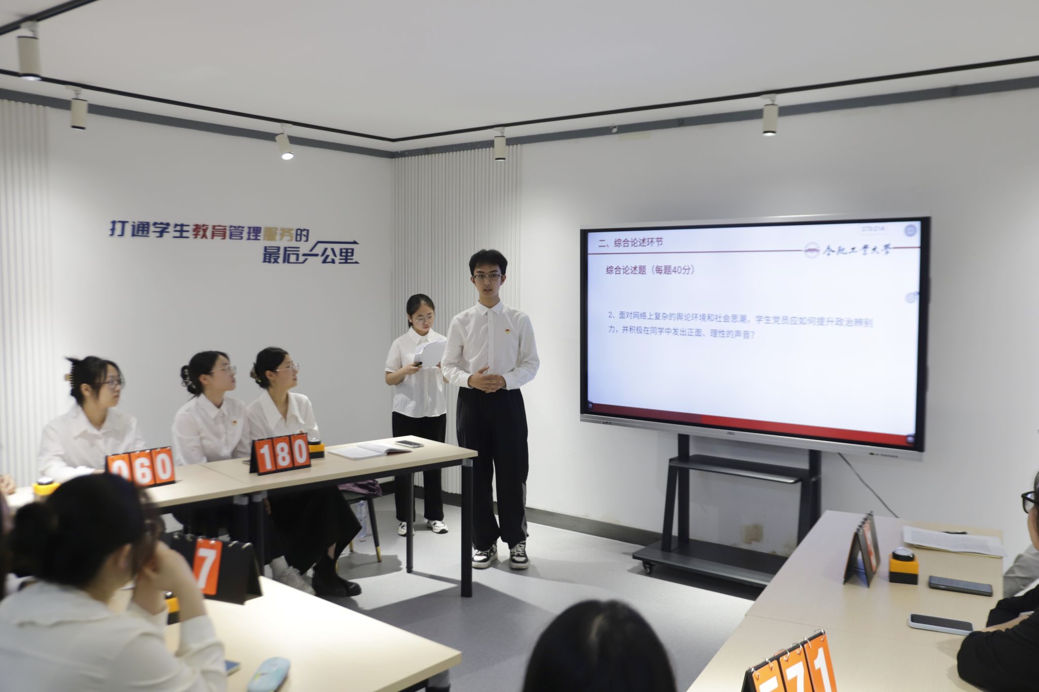 为进一步加强学生党支部建设,全面提升学生党员的政治素质、理论水平和业务能力,10月15日,冰球突破豪华版官方网站在屯溪路校区七号宿舍楼学生社区举办“夯基固本·争先创优”首届党务素质能力竞赛。学院相关工作负责人、辅导员代表、学生党员代表参加活动。