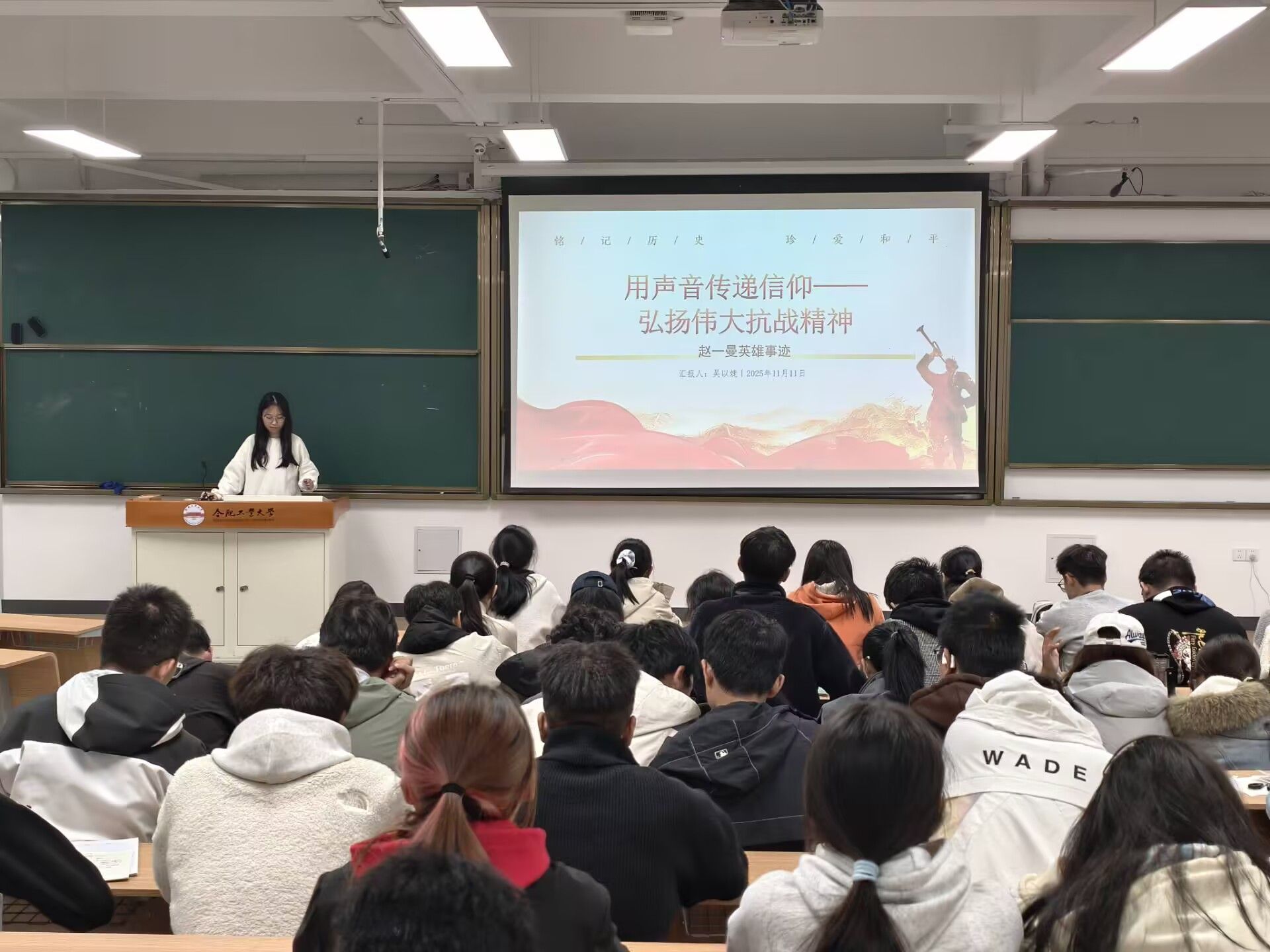活动中,学员们通过故事讲述、精神解读和互动交流,结合详实史料,深情回顾了平型关大捷、百团大战等经典战役中的英雄事迹,生动再现了革命先烈为民族独立奋勇斗争的壮烈场景。他们进一步将抗战精神与新时代青年的责任使命紧密联系,引导新生深入理解其时代内涵,从峥嵘岁月中汲取奋进力量。在互动环节,新生们围绕“新时代如何践行伟大抗战精神”等话题踊跃提问、积极交流。现场气氛热烈,同学们纷纷表示,将以革命先烈为榜样,把抗战精神转化为学习动力,努力成长为有理想、敢担当、能吃苦、肯奋斗的新时代好青年。