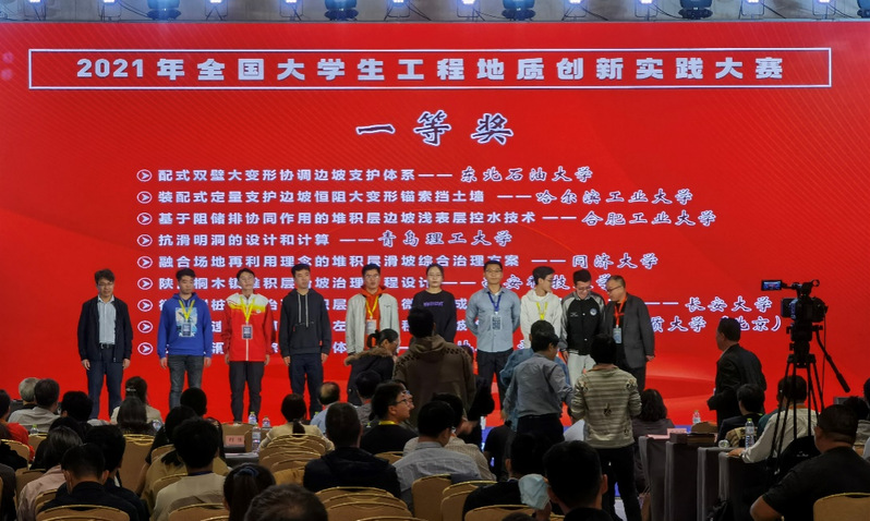 近日,由中国地质学会工程地质专业委员会和青岛理工大学共同主办的“全国大学生工程地质创新实践大赛”决赛落下帷幕。本届大赛在初赛阶段由多位专家进行线上盲评,最终确定29所高校共计58支队伍进入全国总决赛。通过专家组评审,线下答辩,知识竞赛等方式严格筛选,冰球官网冰球突破豪华版官方网站陈宗涵、奚晨宇、许恒硕三位同学,在许龙、查甫生老师共同指导下,通过创新设计和出色表现成功入围决赛,并最终脱颖而出,荣获大赛一等奖。冰球官网冰球突破豪华版官方网站李国梁、张琳两位同学与土木与水利学院唐凌霄同学,在卢志堂、熊峰老师共同指导下,通过前期的认真准备和后期对作品的不断完善成功入围决赛,并最终脱颖而出,荣获大赛二等奖。