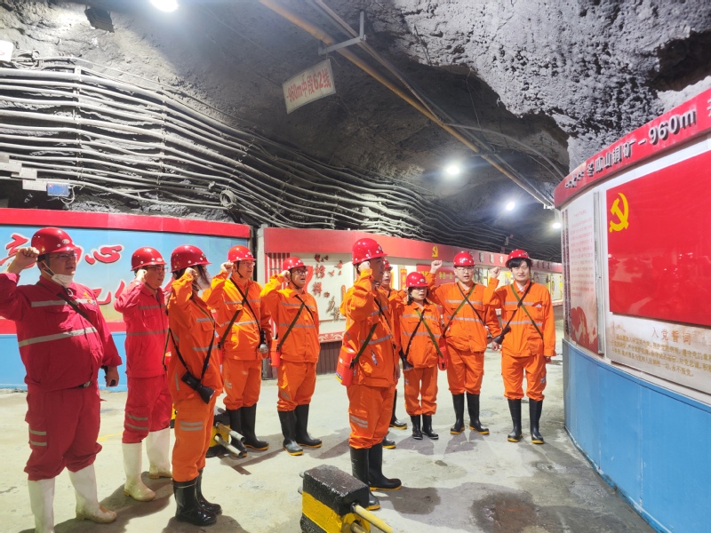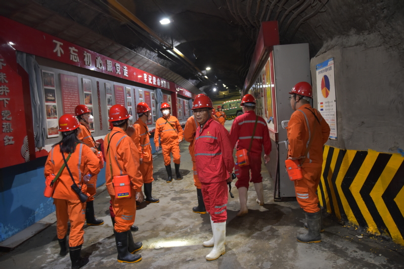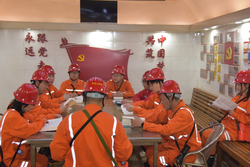 学习实践期间,全体党员接受了矿区安全生产专题培训。实地参观了冬瓜山铜矿的生活区、井下巷道和井下党校等区域,深入了解了冬瓜山铜矿的发展历程,身临其境感受了矿产资源的开采保护。大家就冬瓜山铜矿的生产、管理、党建工作等方面工作与铜陵有色矿产资源中心党委书记李长庆等同志进行了深入交流。在负760米中段候罐室不远的巷壁上,党建学习园地和井下文化驿站令人停驻,从“党建文化墙”感受到一代代矿工勤恳敬业的奉献精神和劳模精神,体验了别具一格的红色文化和企业文化。大家纷纷表示,冬瓜山铜矿将党建阵地前移,向千米井下延伸,其中“千米井下党旗红”党建特色品牌入选首届国有企业党的建设论坛最佳案例和安徽省国资委党委党建工作“领航计划”示范库,具有很强的借鉴意义和教育意义。