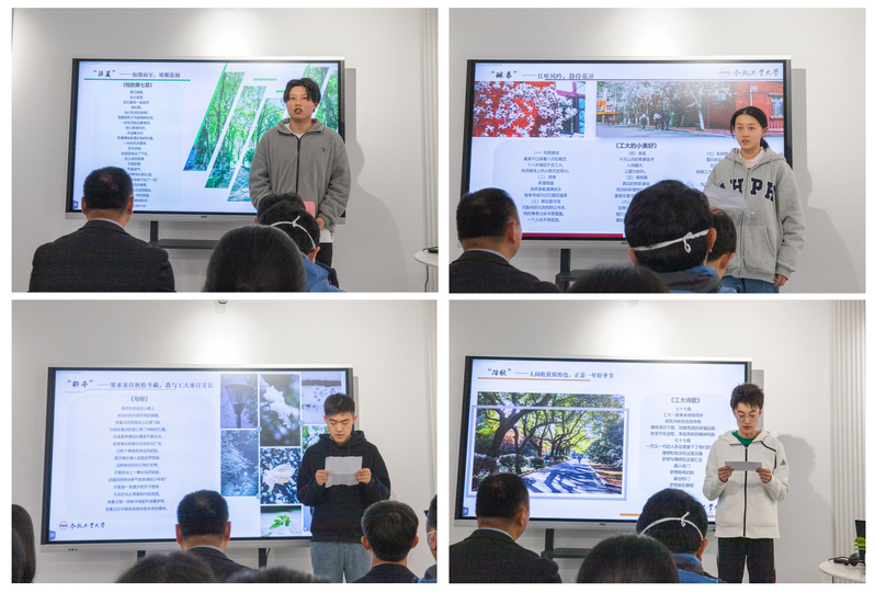 活动在爱校荣校主题微视频《最美人间四月天》中拉开序幕,诗歌朗诵环节从初进校园《与你》、校园生活《走过四季》、离校惜别《惜别工大》三个篇章,吟诵了每位工大人珍藏心底的对母校的赞歌。作品创作理念分享环节,获奖作品作者从酿春《工大的小美好》、染夏《校的第七章》、拾秋《工大诗歌》、期冬《与你》分享创作心得体会,演绎成长的青春画卷,抒发了工大学子对母校的感恩之情。主题微分享环节,聚焦“爱国”“爱党”“爱校”,汽车与交通工程学院代硕老师、冰球突破豪华版官方网站王冠英老师、食品与生物工程学院张倩老师分别作《弘扬爱国主义思想 做新时代爱国青年》《写给党的第一封“情诗”》《汇聚青春力量,践行校训担当》主题分享,呼吁同学们坚定理想信念,践行初心,担当使命,做爱国、爱党、爱校的工大人。