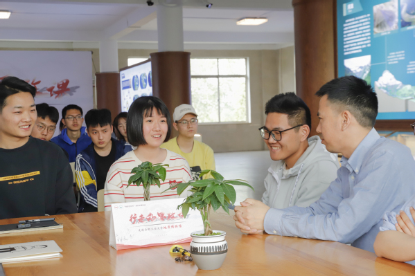 最后,师生围坐在一起,就地球环境变化、气候载体研究等方面展开了热烈的分享交流。同学们纷纷表示,在“看得见、摸得着”的化石、矿物标本中,地学知识与科学精神变得形象与生动,在耳濡目染中,地学文化根基与工业报国志向变得立体与清晰。