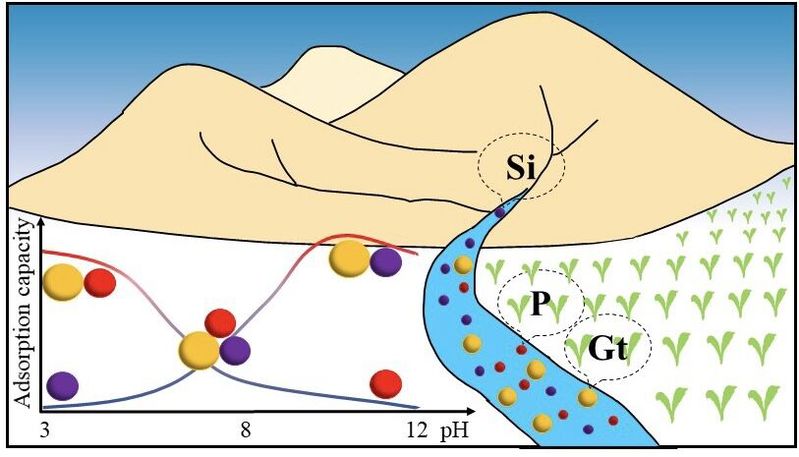 土壤环境中磷的归趋与矿物吸附/解吸过程密切相关,同时也受制于共存含氧阴离子团影响。团队结合吸附实验和DFT模拟计算,深入探究了环境中不同pH条件下硅酸阴离子团和磷酸根在针铁矿表面的竞争吸附行为,揭示了硅酸阴离子团对针铁矿表面不同位点类型吸附磷酸根的影响规律。这项工作不仅丰富了针铁矿表面含氧阴离子表面络合结构的知识体系,还有助于对自然环境复杂多组分系统中无机盐在氧化铁上吸附行为的理解。成果于2022年1月以题为“Understanding competitive phosphate and silicate adsorption on goethite by connecting batch experiments with density functional theory calculations”发表在《Environmental Science & Technology》期刊上(图3)。冰球官网博士研究生陈平为论文第一作者,陈天虎教授、Prof. Xin Zhang、Prof. Kevin M. Rosso为论文共同通讯作者,冰球突破豪华版官方网站为论文第一单位,美国西北太平洋国家实验室为论文合作单位。
