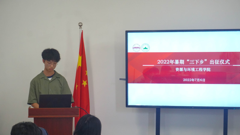 深入学习宣传贯彻习近平新时代中国特色社会主义思想,引导学院广大青年学生在社会课堂中受教育、长才干、作贡献,在观察实践中学党史、强信念、跟党走,以实际行动喜迎党的二十大召开,7月6日,资环学院在西教304举行2022年大学生暑期“三下乡”社会实践出征仪式。